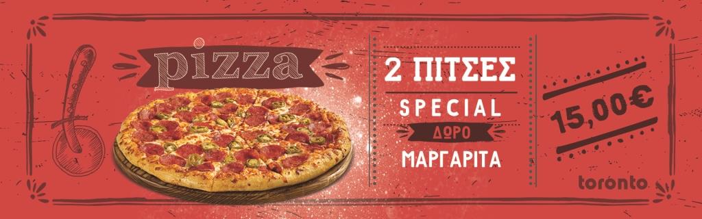 Καλως Ήρθατε στην Ιστοσελίδα της Γεύσης. Η Pizza Toronto από το 1978 κάθε μέρα ζυμώνει με φροντίδα και μεράκι για εσάς την πιο νόστιμη πίτσα. χρησιμοποιεί τα πιο εκλεκτά, φρέσκα υλικά και δημιουργεί μοναδικές γεύσεις.
